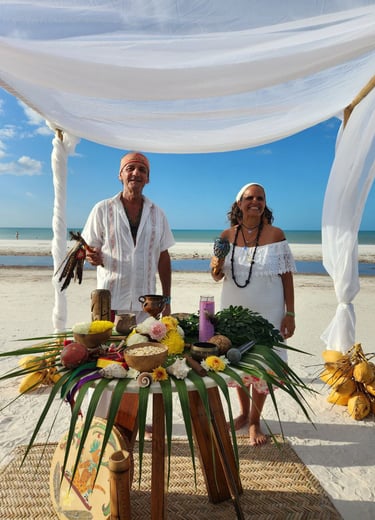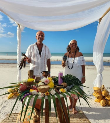 Llegando los novios delante del altar el shaman les dará la bienvenida y presentara el propósito de la ceremonia.