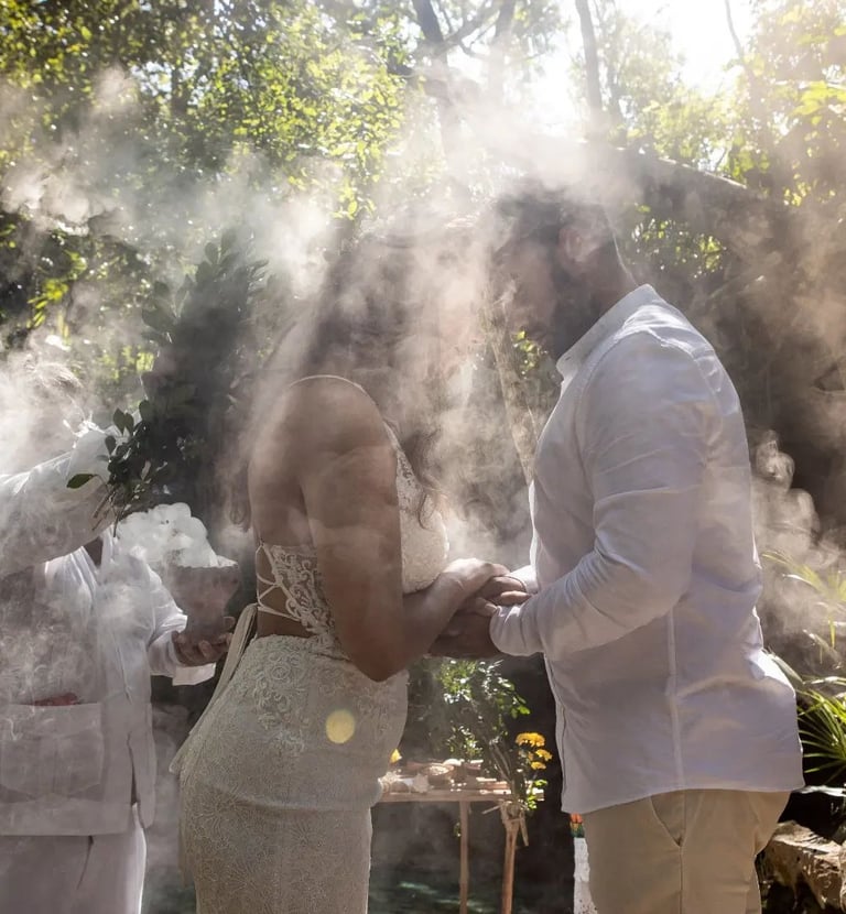 Dirigida por el oficiante maya, heredero de los rezos y tradiciones originales, la Boda Maya se lleva a cabo en la forma tradicional, por el shaman